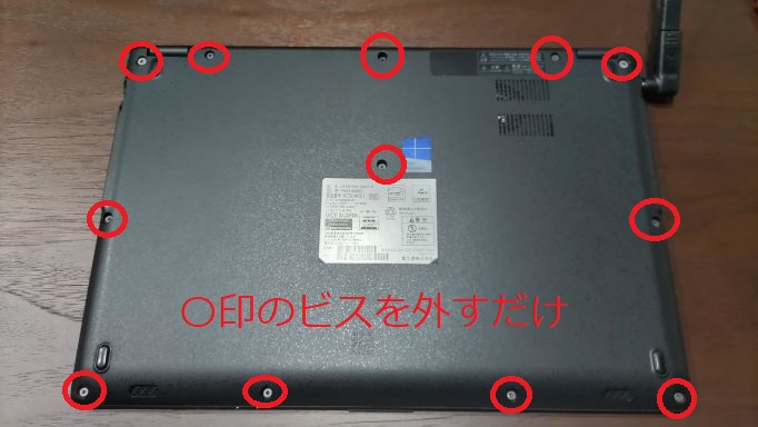 〇印をつけた場所にあるビスを外すだけで、簡単にカバーを外すことができます。ツメなどもなく、とても簡単な部類だと思います。