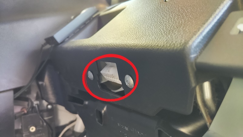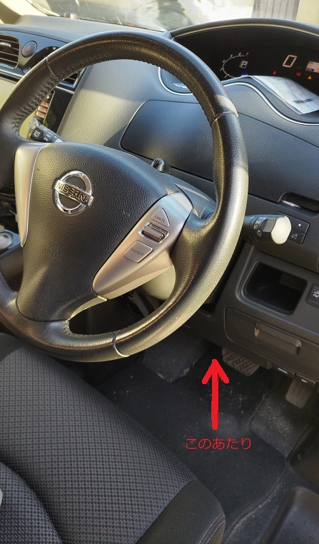 運転席の足元にあるOBDの接続端子にAL600のコードを接続します。