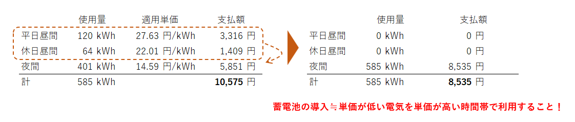 家庭用蓄電池でエネルギーコストを削減するということは、結局、高い単価の電気を使わずに低い単価の電気を使うということなので、単価差×電気使用量以上のメリットは出ません。