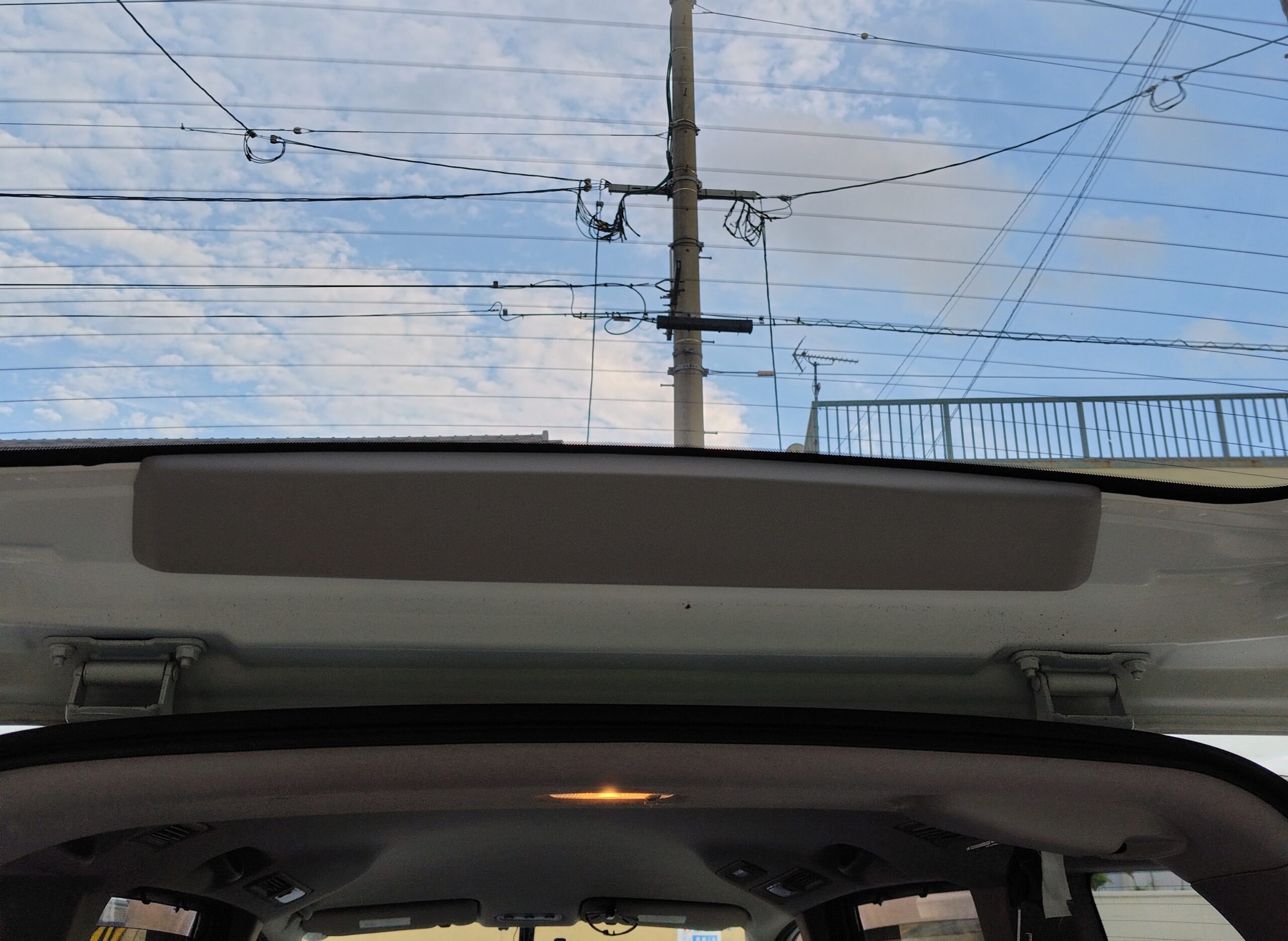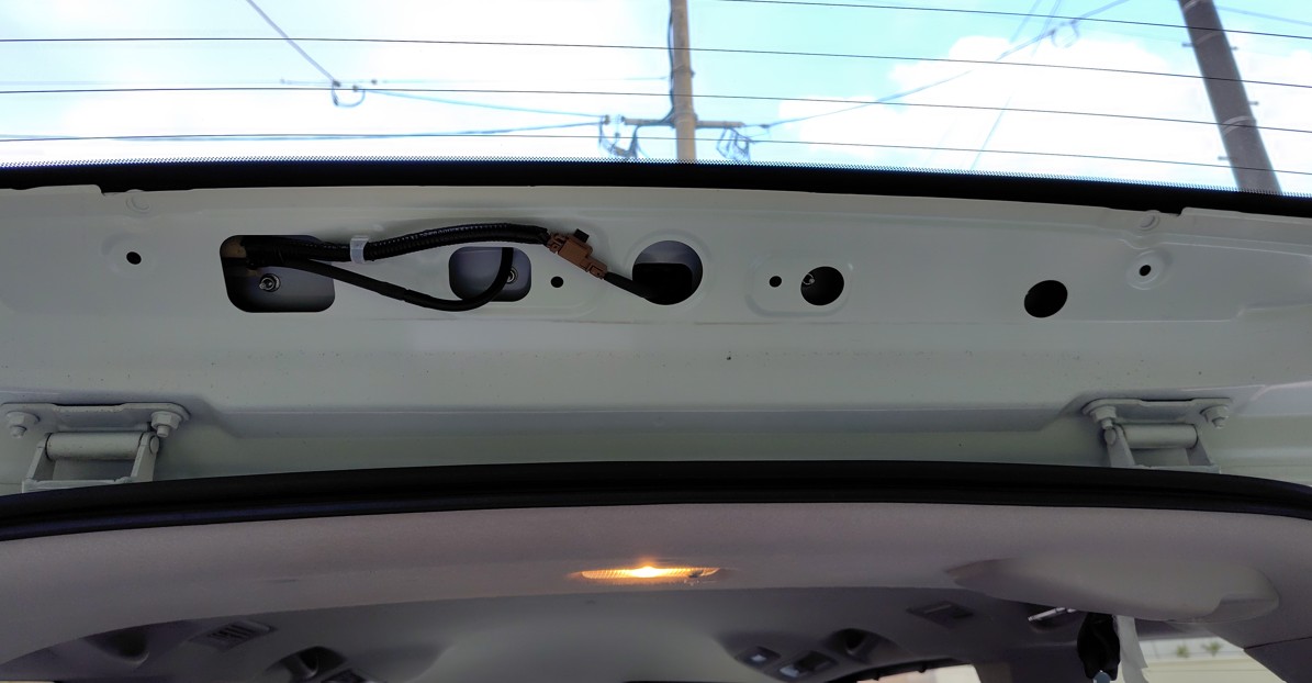 バックドアの前方に向かって左上にある蛇腹のところを起点にしてリアカメラに向けてとフロントに向けての2方向にリアカメラのコードを通していきます。