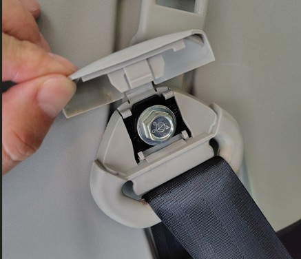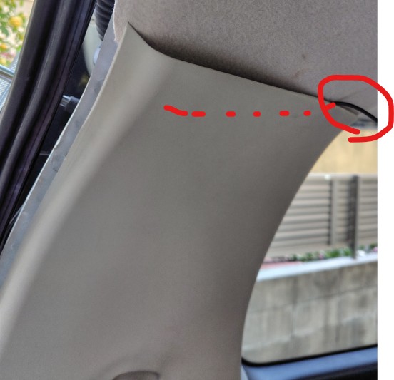 後部座席のシートベルトを緩めて、内張を浮かせて配線を確認できるようにします。ボルトのサイズは14mmだったかな…