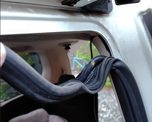 パッキンを外しながら内張との隙間に配線を通していきます。