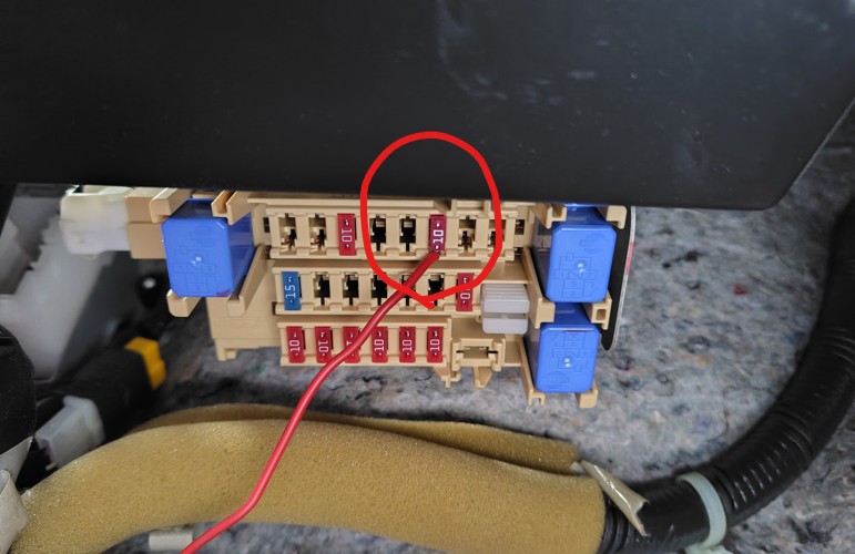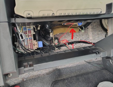 ダッシュボードのボックスを外してやると、奥にヒューズボックスが見えるようになります。